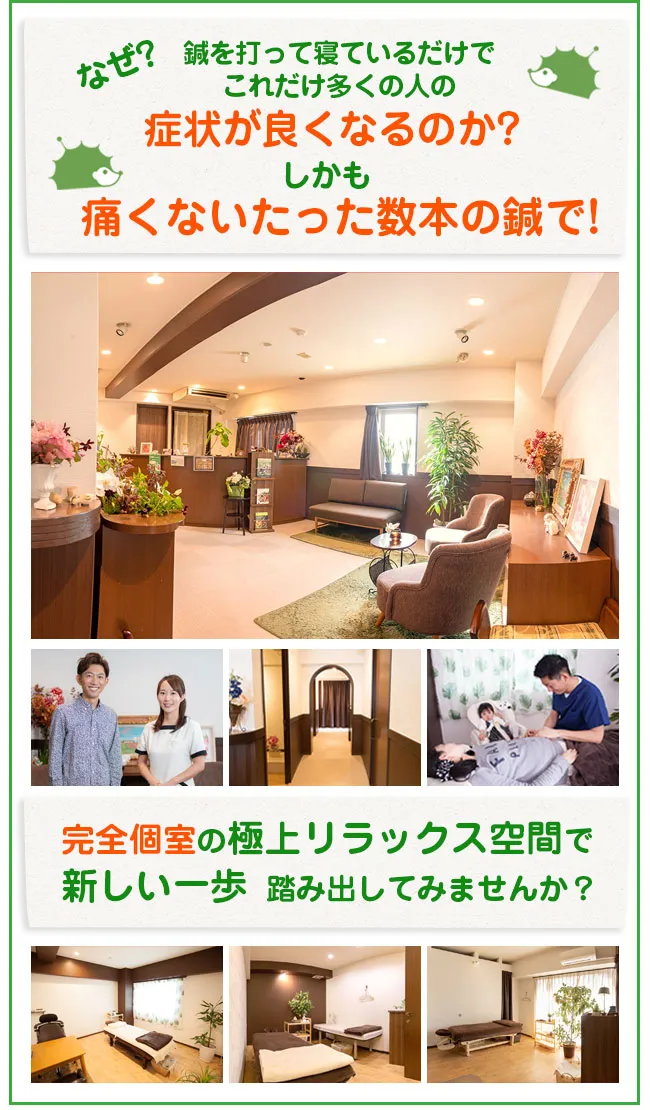 他院2か所でも治療経験がありますが、こちらは部屋が個室で、待ち時間もなく、リラックスして治療を受けることができます。