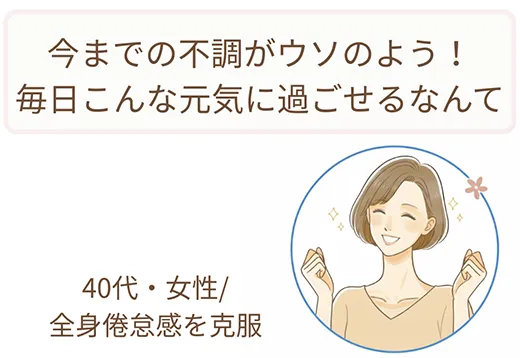 長年の不調に悩んでいた方も、一緒に健康と