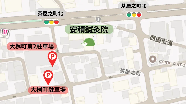 1. 当院周辺のコインパーキングにご駐車ください。
