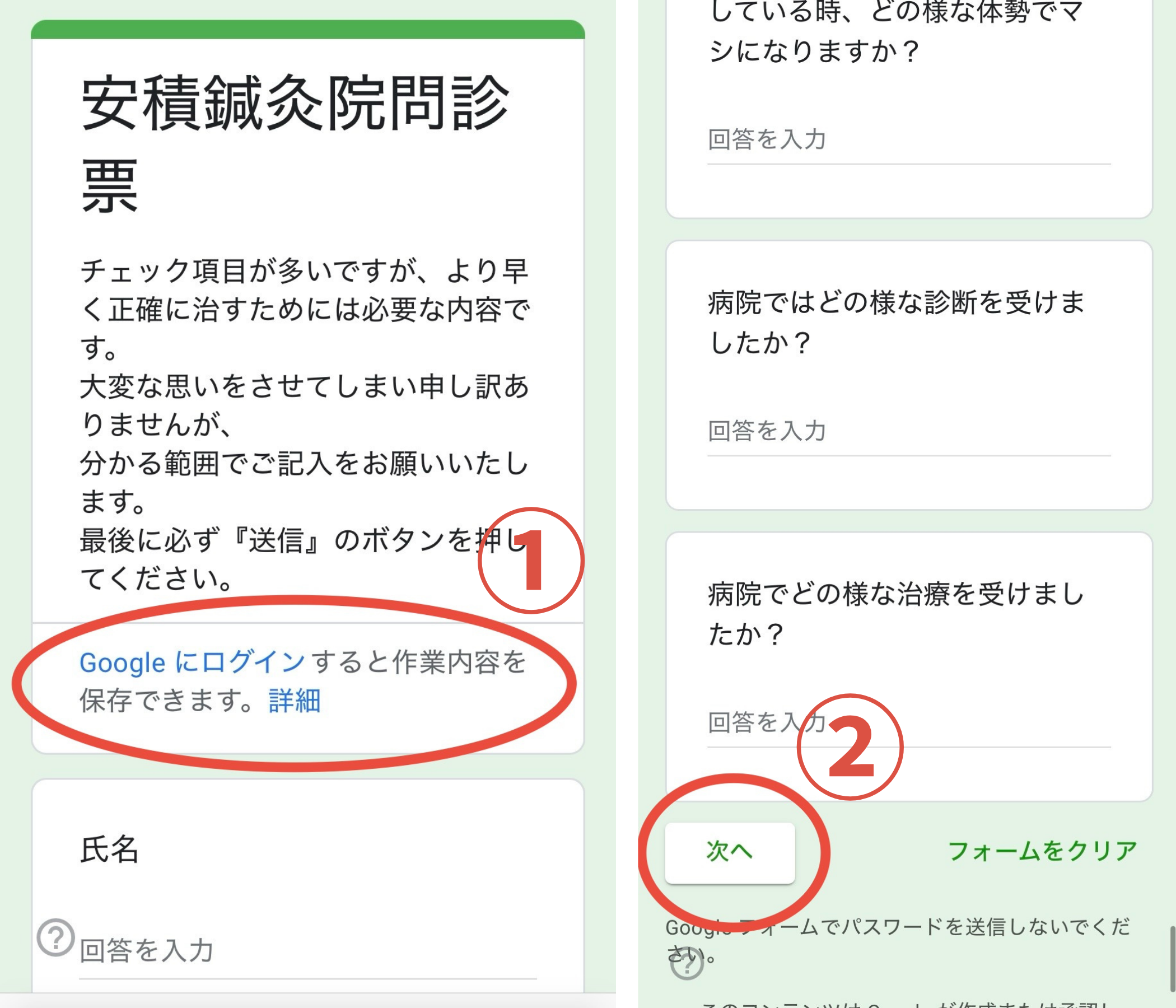 ① Googleアカウントをお持ちの方はログインして頂きますと内容が保存できますので、ログインする事をお勧めします。